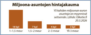 Lauttasaaressa on kaupan peräti 32 asuntoa, joista pyydetään yli miljoonan euron hintaa. Kolme kalleinta kohdetta on myynnissä Katajaharjussa.