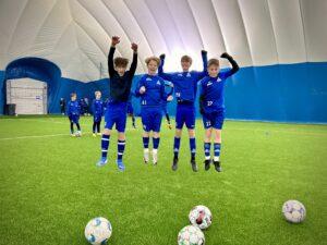 Oscar, Niilo, Atte ja Emil ovat Eirasta ja yleensä käyneet Jätkäsaaren kuplassa, mutta tänään on United-treenit Lauttasaaressa. ”Tää on hieno”, he kommentoivat.