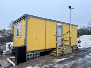 Kuplan takana on huoltokontti, joka toimii pukuhuoneena. Siellä on myös vessa. Vieressä on toimistotila, jossa voi vaikka keittää kahvia, jos on tapahtumaa meneillään.