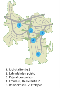 Den 2 maj ordnas Drumsö städtalko. På insamlingspunkterna märkta på kartan kan du hämta och returnera skräppåsar och -tänger mellan kl. 11 och 15.