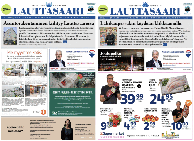 Lauttasaari-lehden tilausten kotiin toimitus aikaistuu merkittävästi.
