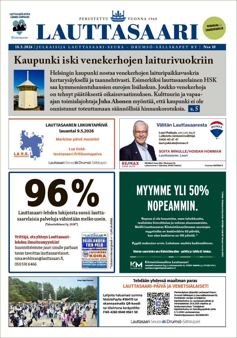 Lauttasaari-lehti etsii osa-aikaista kirjoittavaa päätoimittajaa vastaamaan lehden toimituksellisesta sisällöstä ja viikoittaisesta julkaisurytmistä.