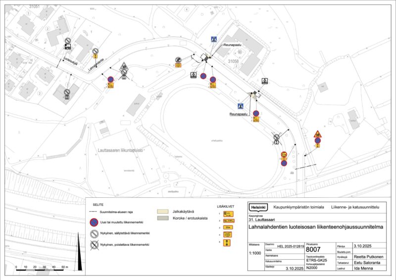 Samalla tarkistetaan pysäköintijärjestelyjä Lahnalahdentiellä.