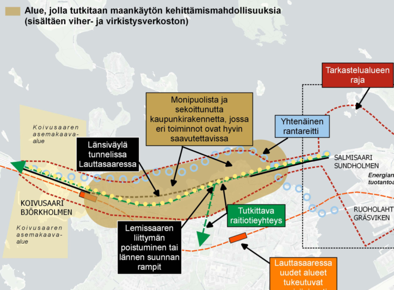 Länsiväylän suunnitelma: jopa 15 000 asukasta pohjoiseen Lauttasaareen ja Salmisaareen