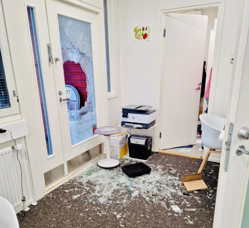 ”Häkellyttävä tilanne. Isolla kivenmurikalla tehty oveen metrin mentävä aukko. Sotkua ja vaurioita on toimistohuoneessa ja lääkevarastossa. Henkilökunta oli aika järkyttynyt tapahtuneesta”, johtava lääkäri Janne Castrén kertoo.