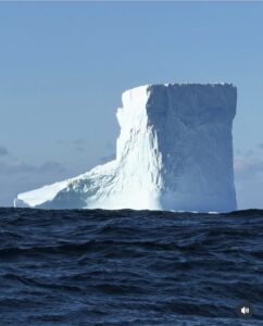 Vene oli törmännyt jäävuoreen ja korkeat aallot löivät venettä vasten jäätä.