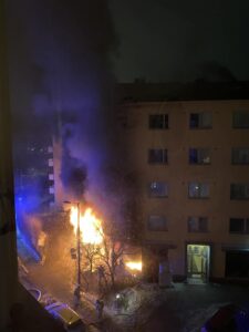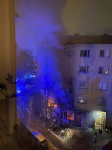 ”Kuului pauketta muutaman kerran ja sitten ikkunakaihtimien välistä loistetta. Kun avasin kaihtimet, liike oli jo ilmiliekeissä. Soitin 112, josta kerrottiin, että palosta oli jo saatu hälytys ja pyydettiin tarkentamaan paikka. Sitten soitin ystävälleni, jonka tiesin asuvan palotalossa, sen toisessa päässä. Palokunta saapui paikalle ja näytti saavan palon nopeasti hallintaan. Edelleen haisee savu”, asukas palopaikkaa vastapäätä sijaitsevasta talosta kertoo.