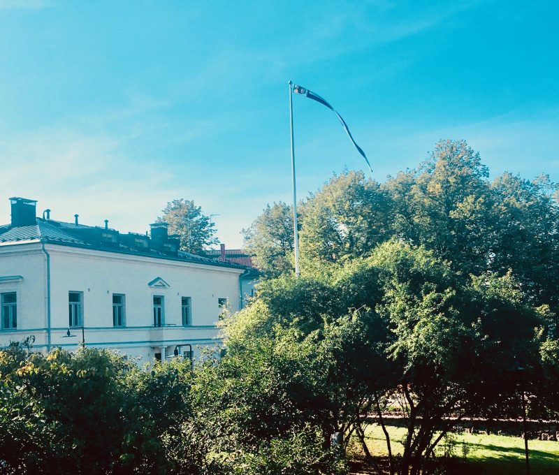 Vuotuisia Lauttasaari-päiviä voi nyt ensi kertaa juhlia tunnustamalla saaren värejä omalla pihalla – tarkoittaa Lauttasaari-viiriä taloyhtiön salossa.